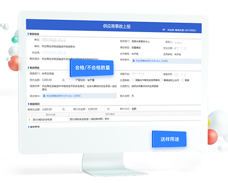 支持记录、查询供应商在采购等过程中所出现的问题或事故,以及需要对供应商发起索赔、降级、暂停或终止合作的记录。