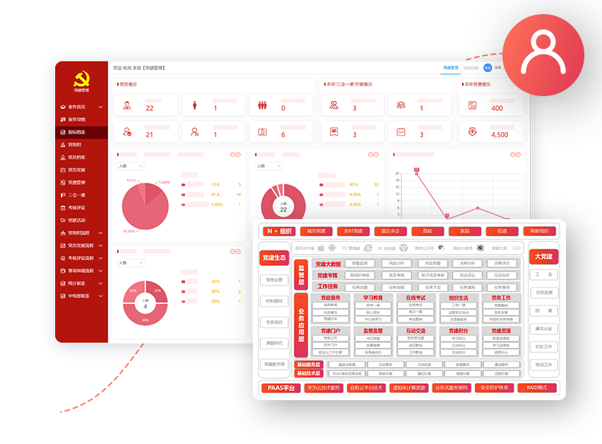 以党员协同为基础,党务流程化管控为抓手,围绕党建事务“管理+监督”双目标,打造一体化党建数字化管理系统。